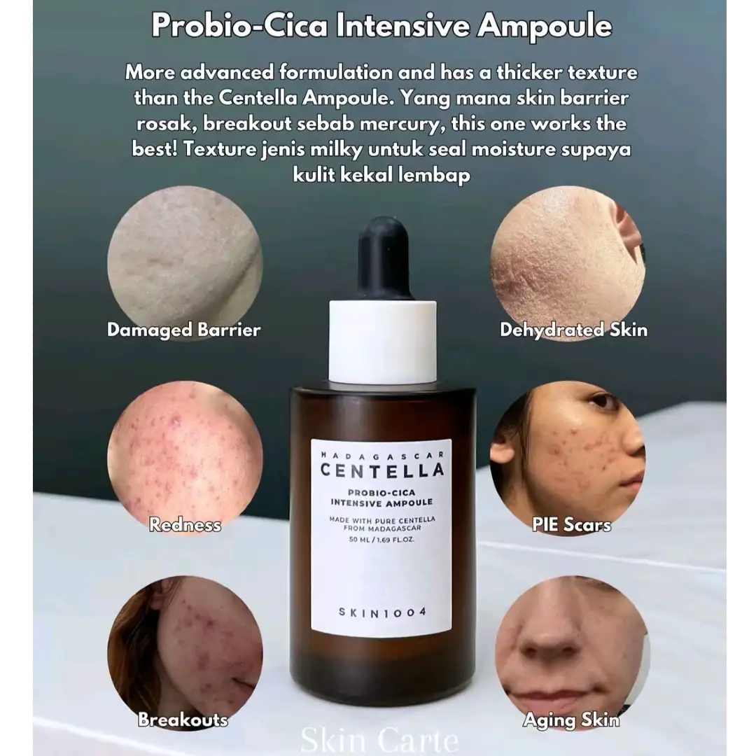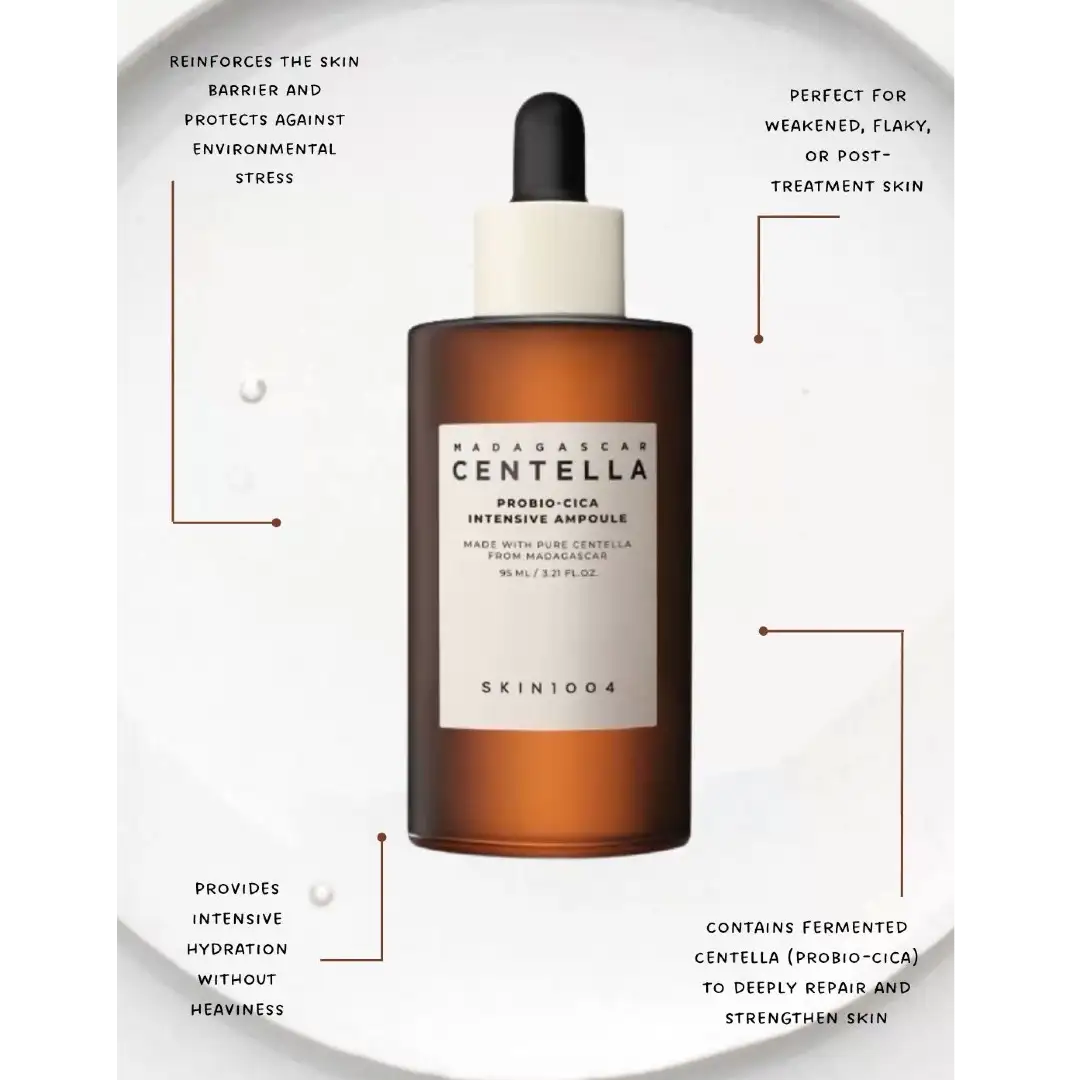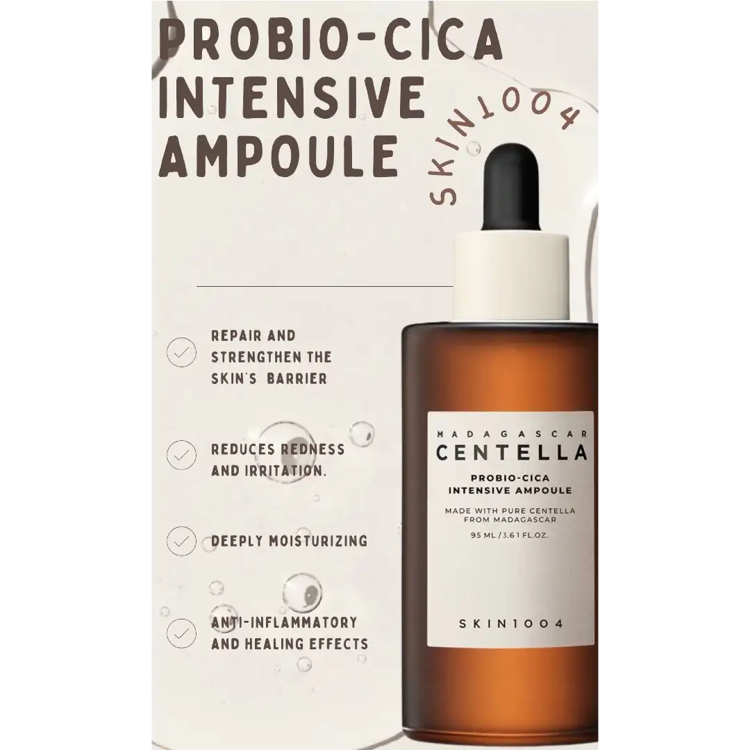 آمپول سنتلا پروبیو سیکا اسکین 1004 یک محصول درمانی، تسکیندهنده و ترمیمکننده قدرتمند است که با بهرهگیری از عصاره خالص سنتلا آسیاتیکا ماداگاسکاری و فناوری پیشرفته Probio-Cica Complex، پوستهای حساس، آسیبدیده و مستعد قرمزی را بهطور مؤثر بازسازی میکند.